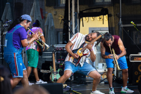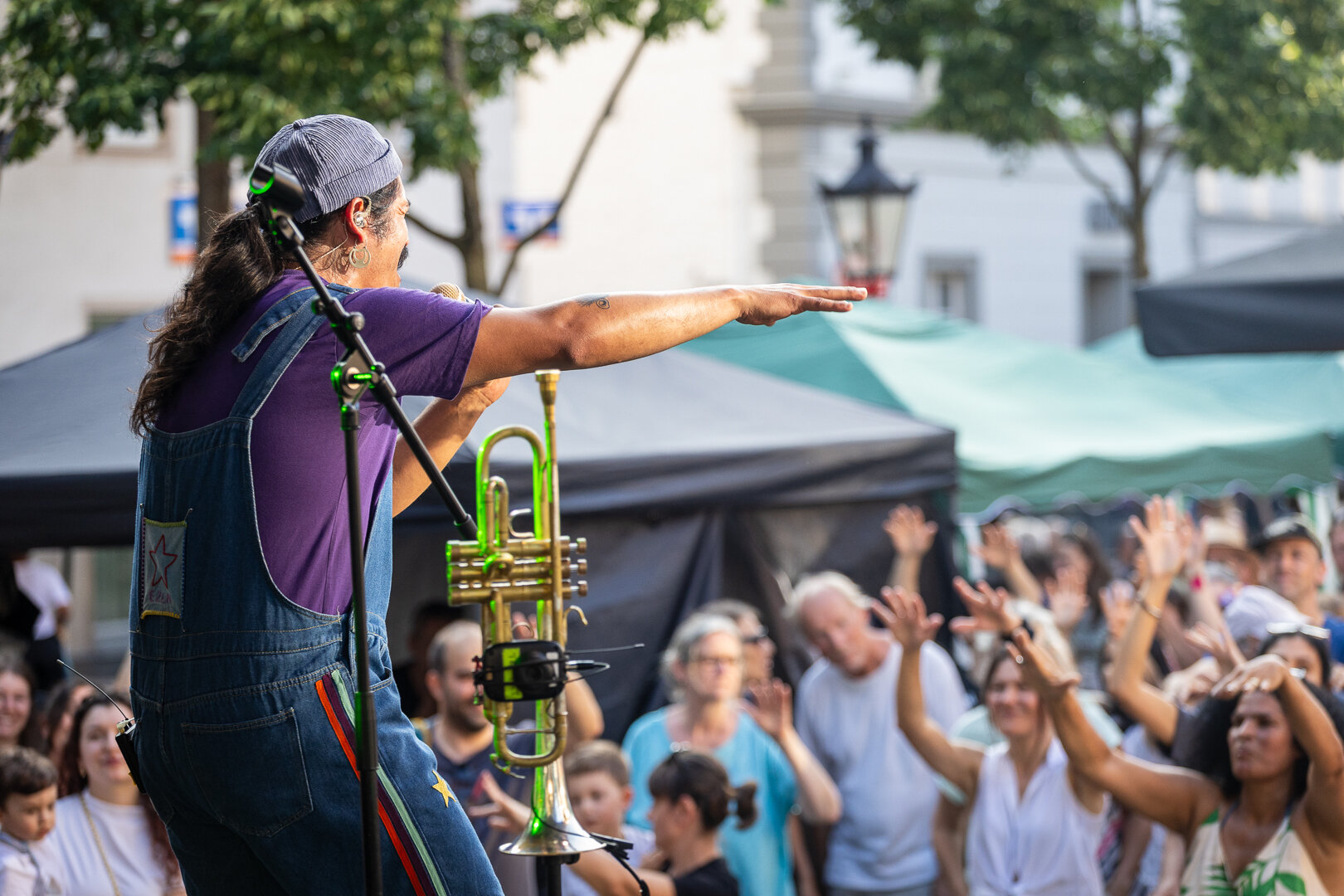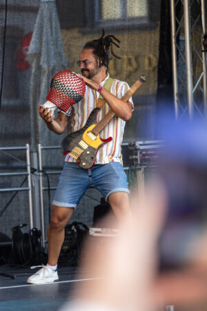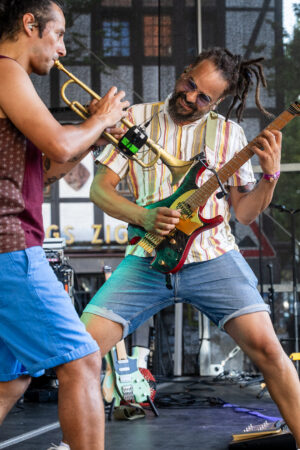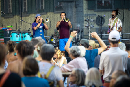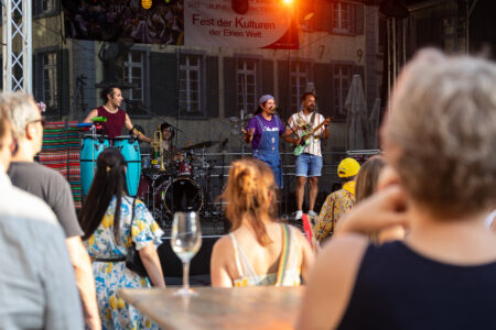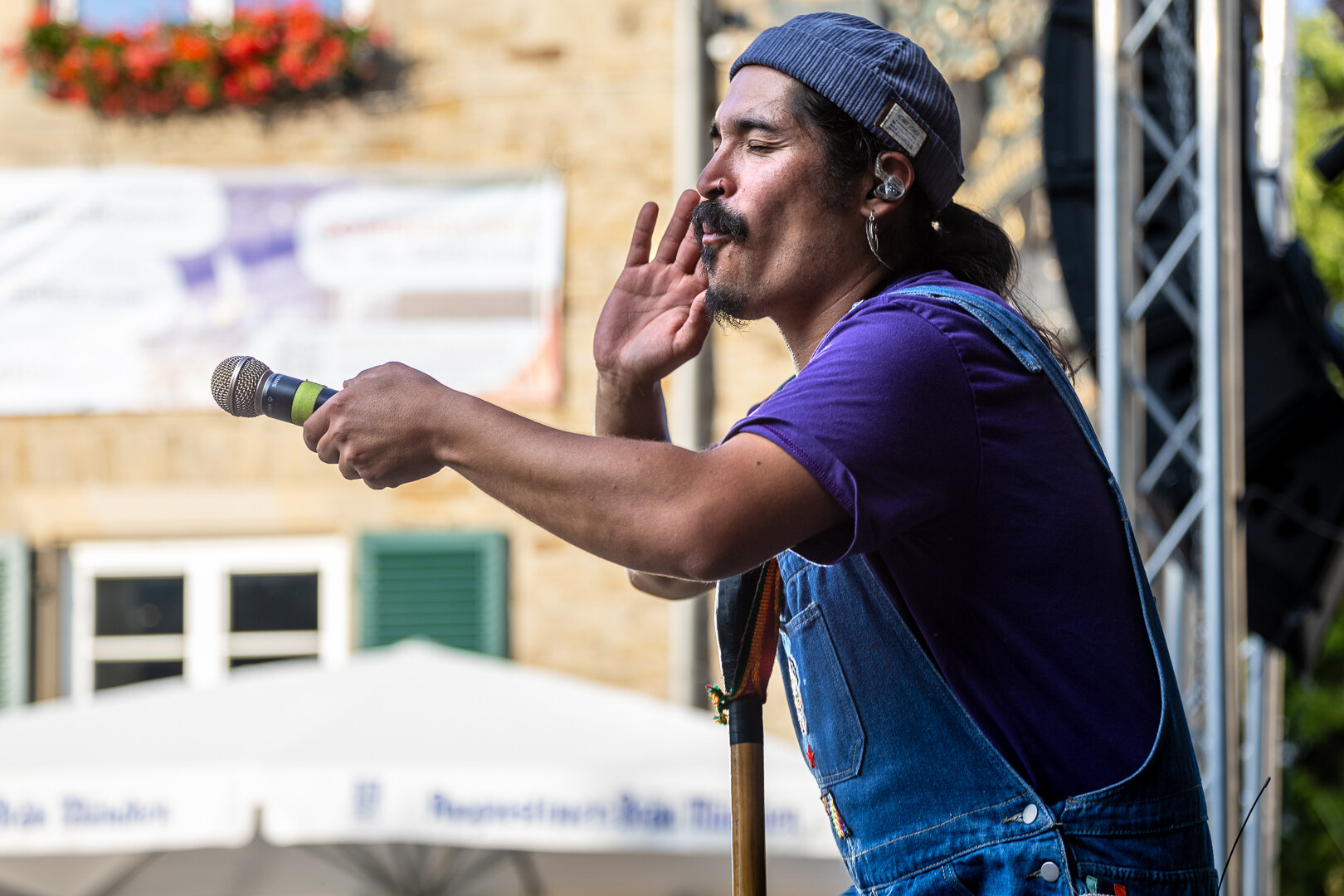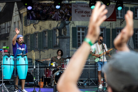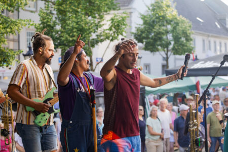 Zum Abschluss wurde es noch einmal richtig laut – und richtig gut: El Flecha Negra, eine Band, die mit ihrer Mischung aus Cumbia, Reggae, Chicha und Latin Beats den Marktplatz in ein Tanzparkett verwandelte.