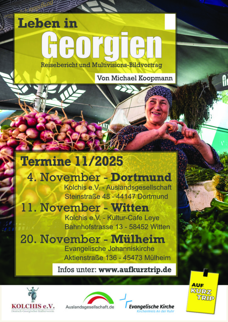 Im November könnte ich „Auf Kurztrip“ für eine Weile in „Auf Tour“ umbenennen – denn gleich an drei Orten im Ruhrgebiet zeige ich meinen Vortrag „Leben in Georgien“.