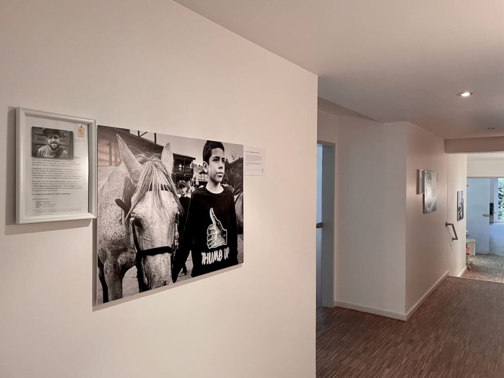Umso schöner war es, als der SKF – Sozialdienst katholischer Frauen e.V. Ratingen, einer der Träger des Lotsenpunktes und direkter Nachbar, auf mich zukam und gefragt hat, ob sie die Ausstellung für ihre Büroräume übernehmen dürfen. So konnte ich die Bilder im Lotsenpunkt abnehmen – und gleich ein Gebäude weiter wieder aufhängen.