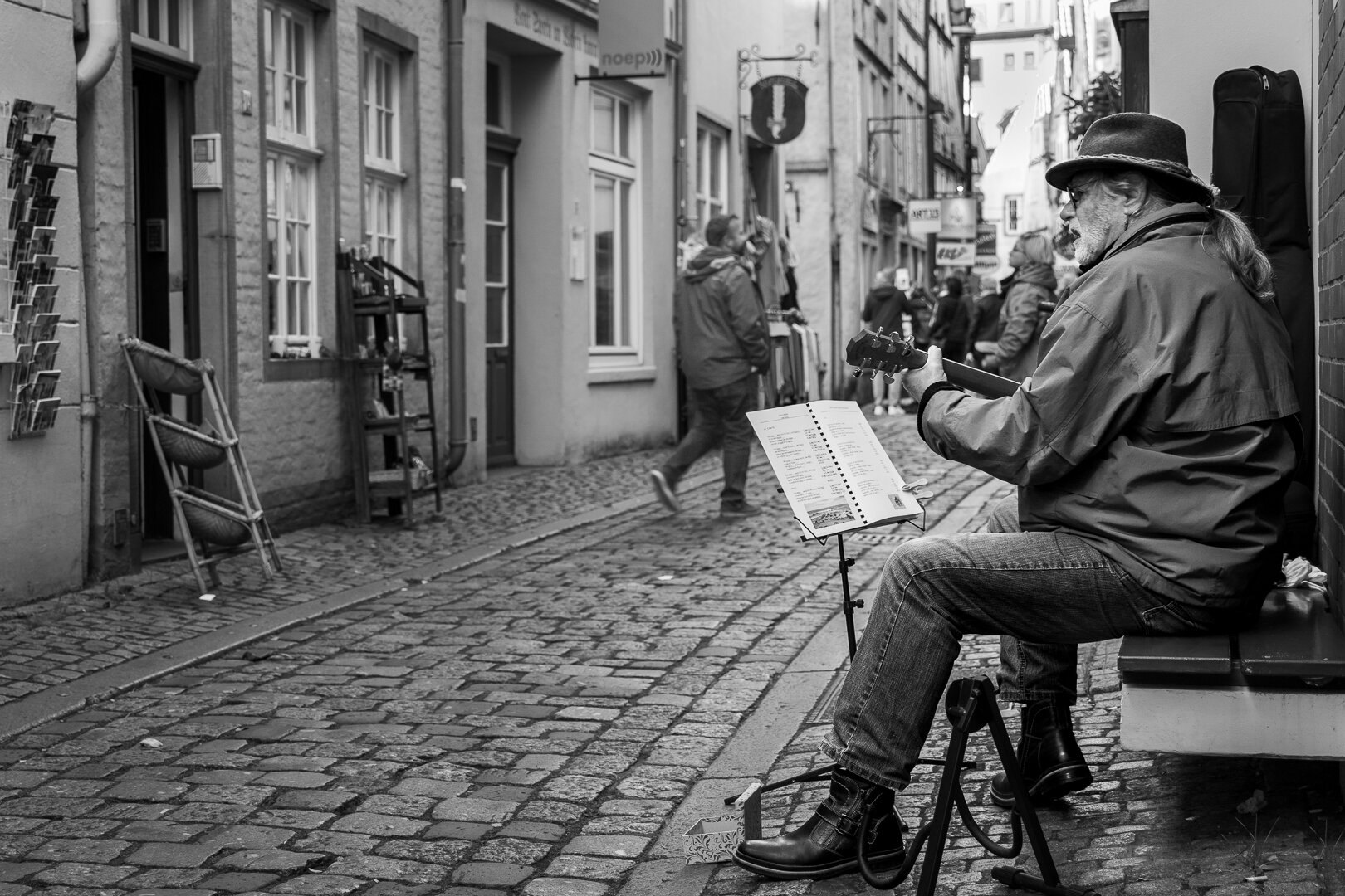 2021 war ich beruflich im Norden unterwegs und konnte einen kleinen Zwischenstop in Bremen machen. Mit der Kamera bin ich dann durch das bekannte Schnoorviertel gelaufen und konnte dort dieses Bild eines Strassenmusikers machen.