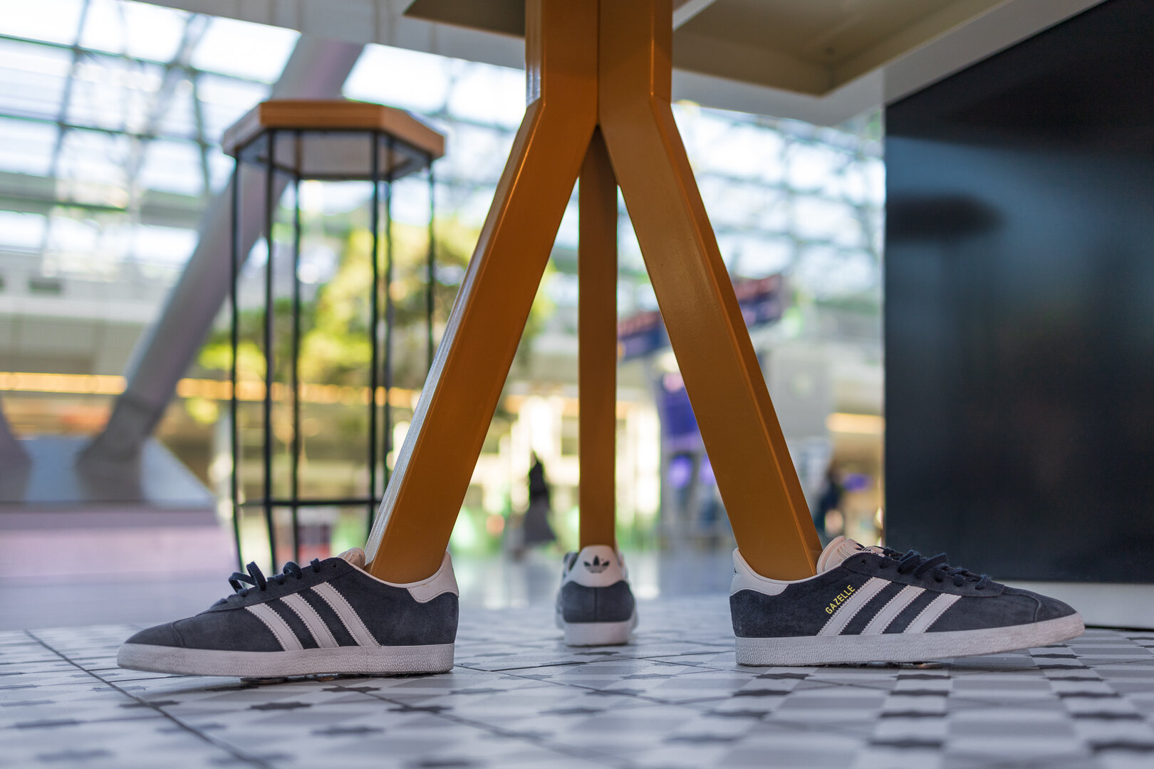 Am Flughafen Düsseldorf haben sogar die Tische Schuhe