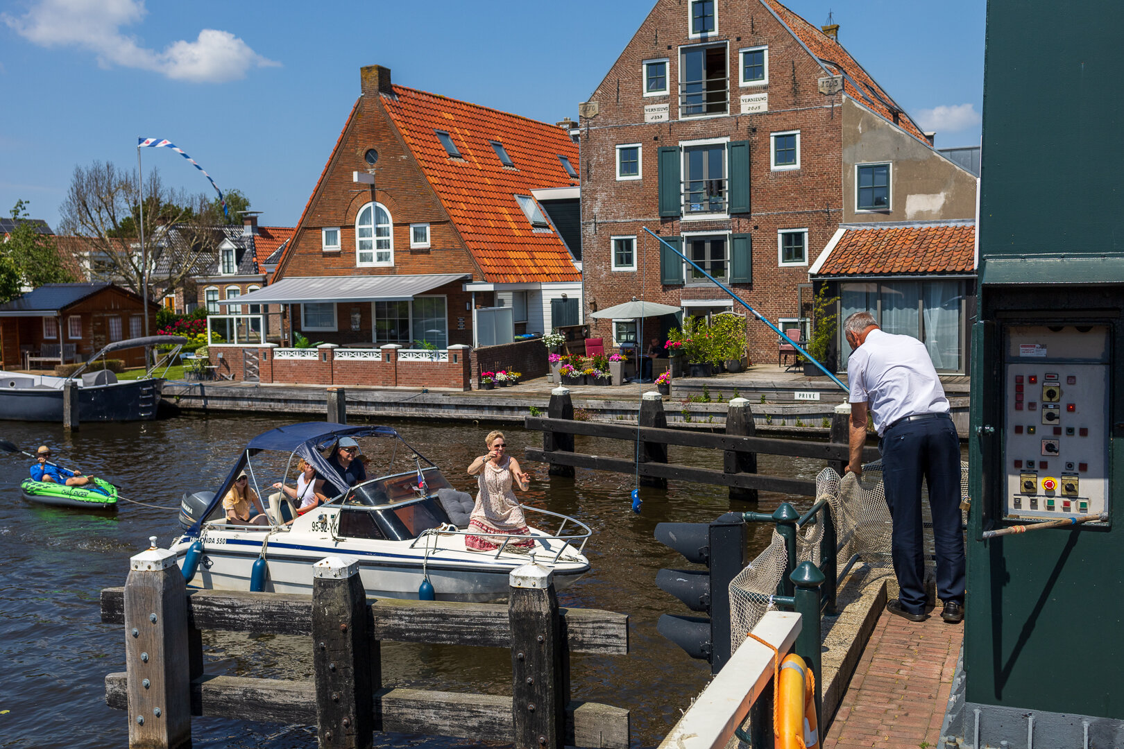 In Lämmer wird für die Booten die Brücke hochgeklappt. Die Gebühr hierfür sammelt der Wärter mit Angel und Holzschuh ein