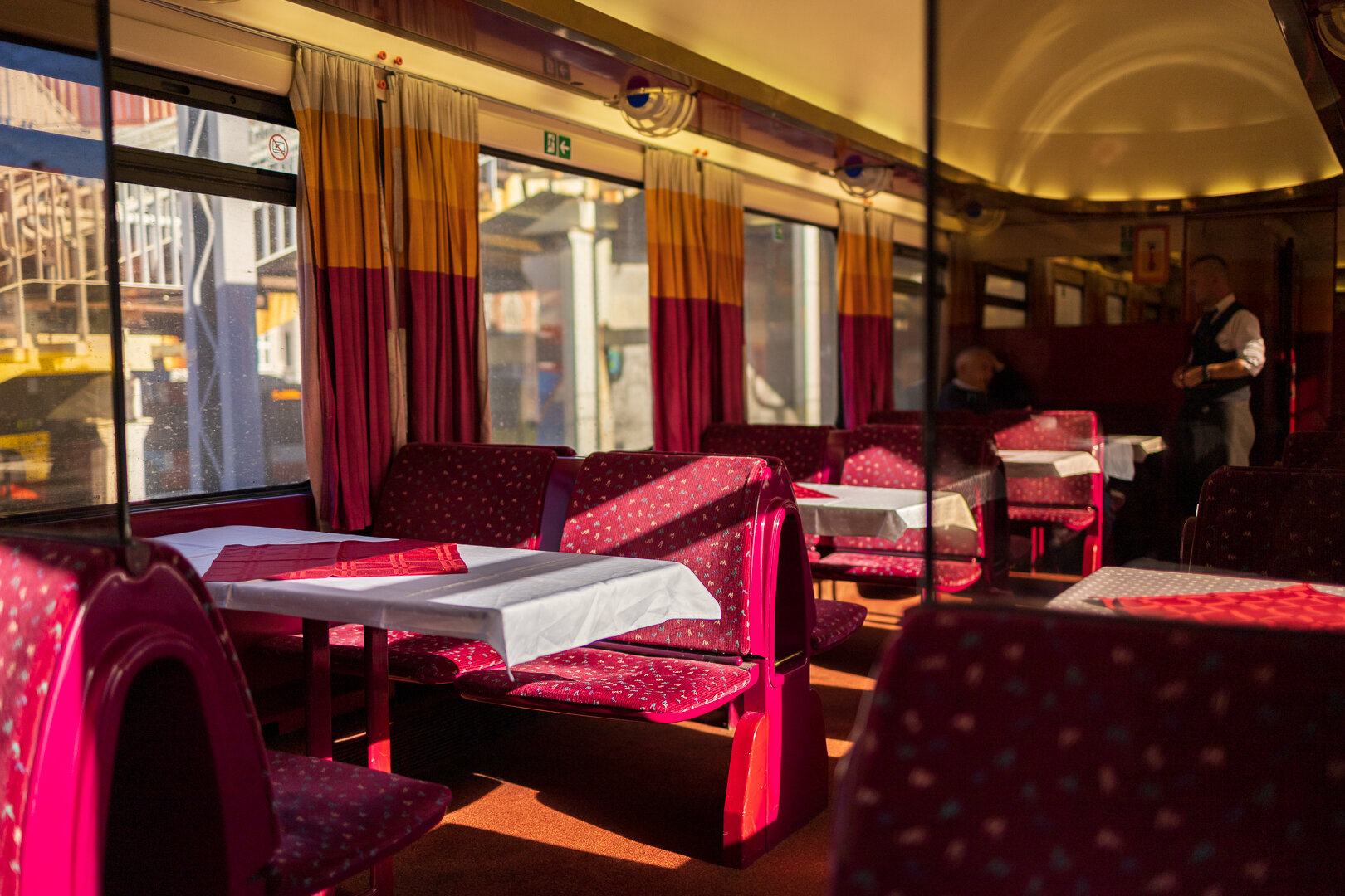 … geht es von Warschau, durch Tschechien, die Slowakei bis nach Budapest. Der Speisewagen der ungarischen Bahn verströmt dabei noch das Flair vergangener Zeiten: weiße Tischdecken, eine elegant gekleidete Bedienung und natürlich bestes Essen. So lässt sich Reisen!