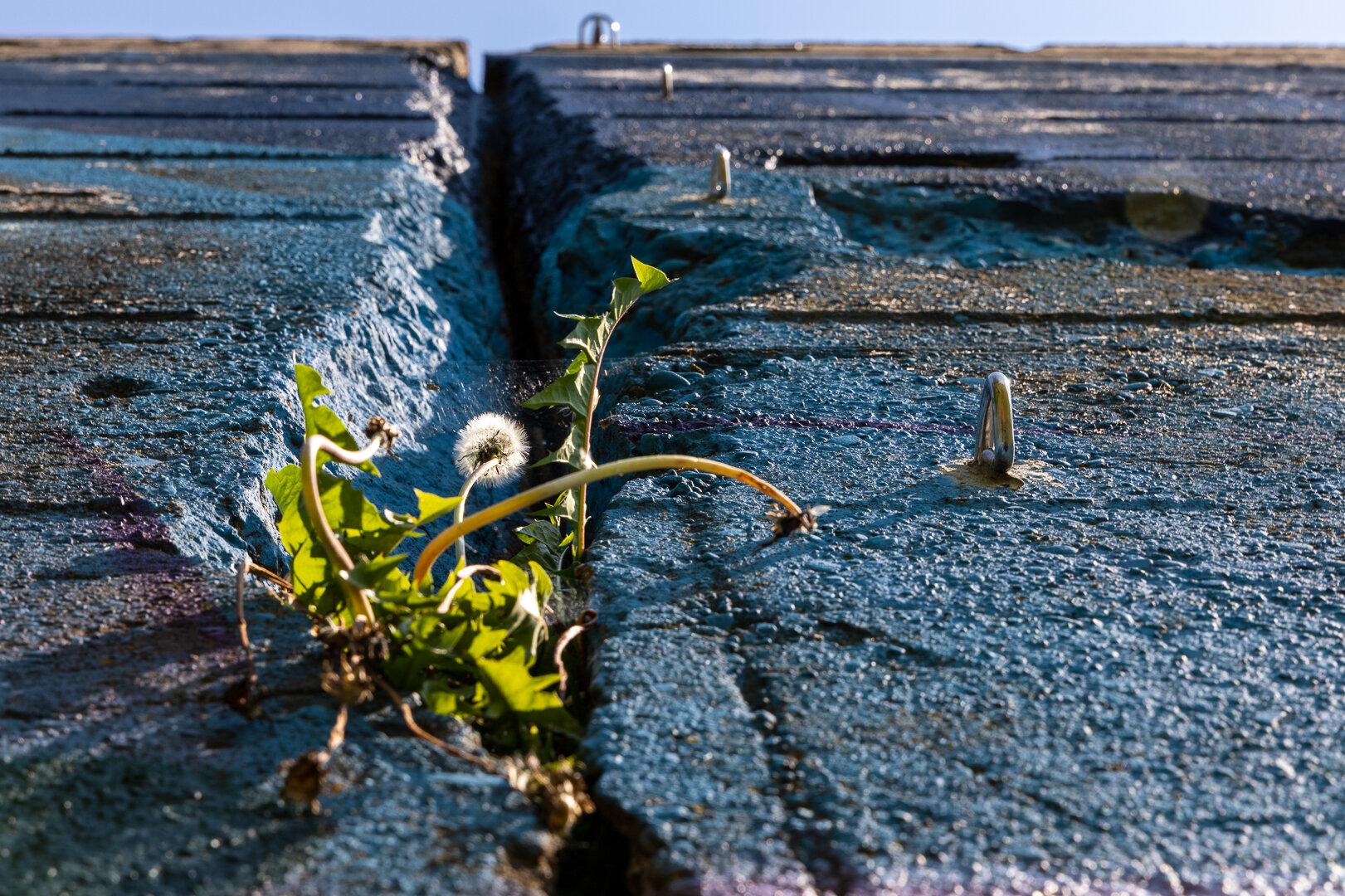 … und nutze Sie.Dieser Löwenzahn im Rheinpark Duisburg hat einen Platz mitten in einern Betonwand gefunden.