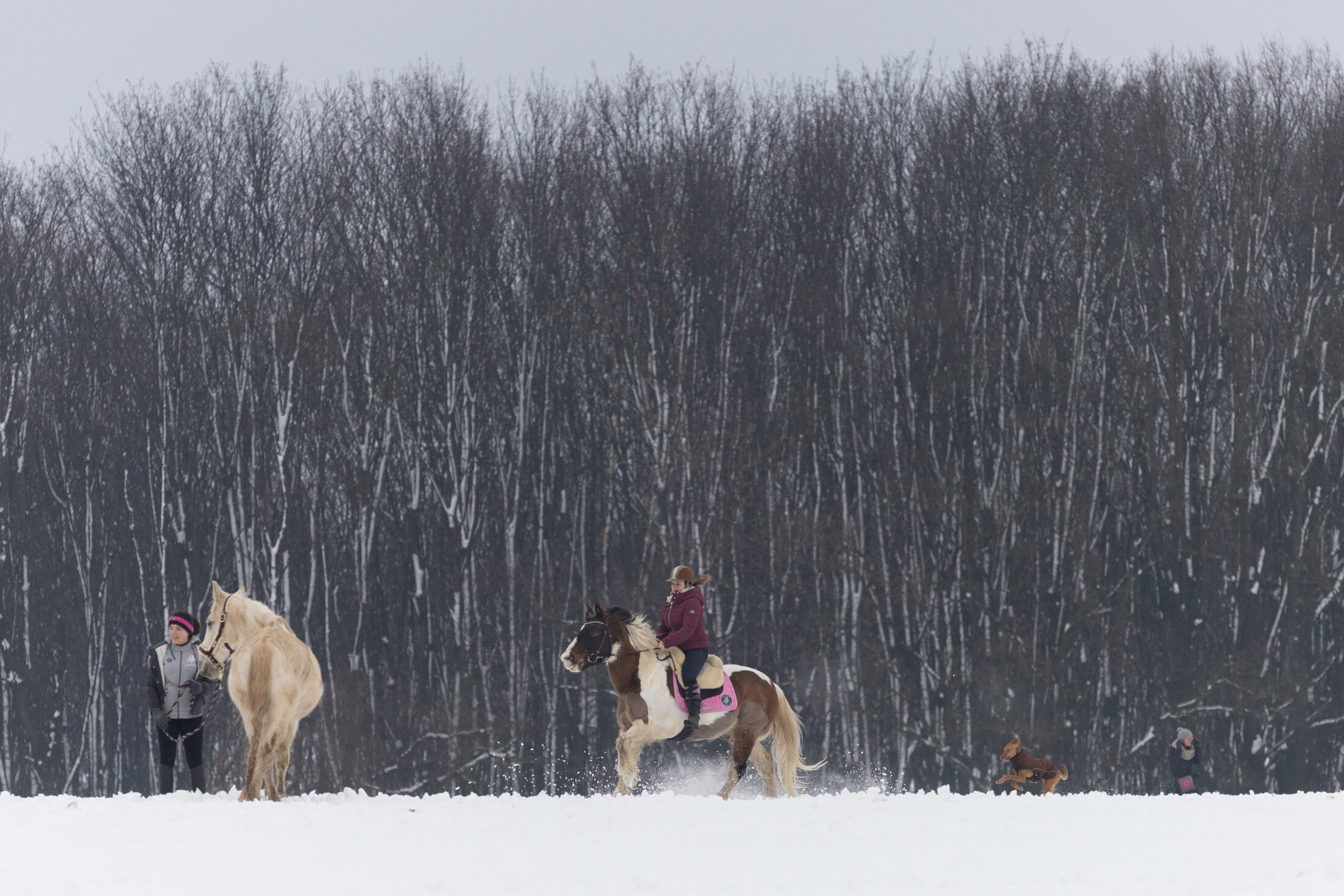 Die Pferde haben genauso viel Spass im Schnee wie ihre Reiter.
