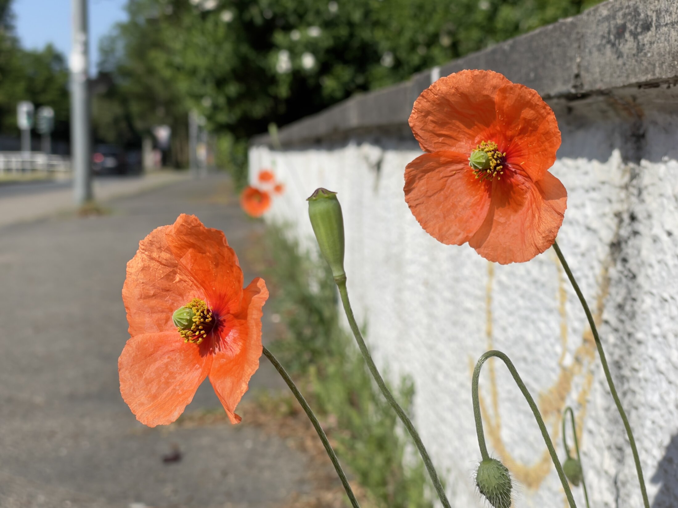 Gestern durfte ich mal raus da ich mich beim Bürgertest ‚freitesten‘ lassen wollte. Auf dem Weg dorthin sind mir diese Mohnblüten am Gehweg aufgefallen.