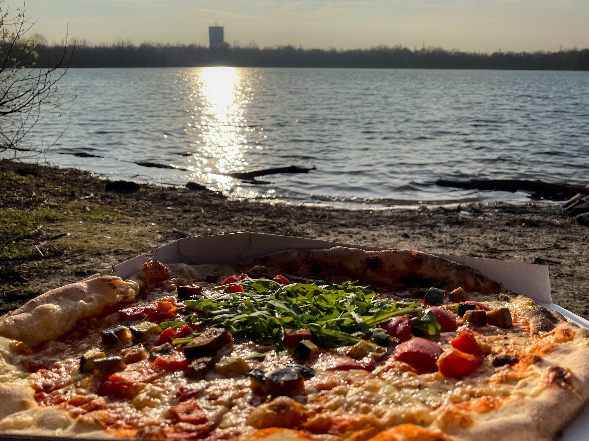 Mein neuer Lieblingsplatz nach Feierabend. Mit einer Pizza auf den Silbersee schauen