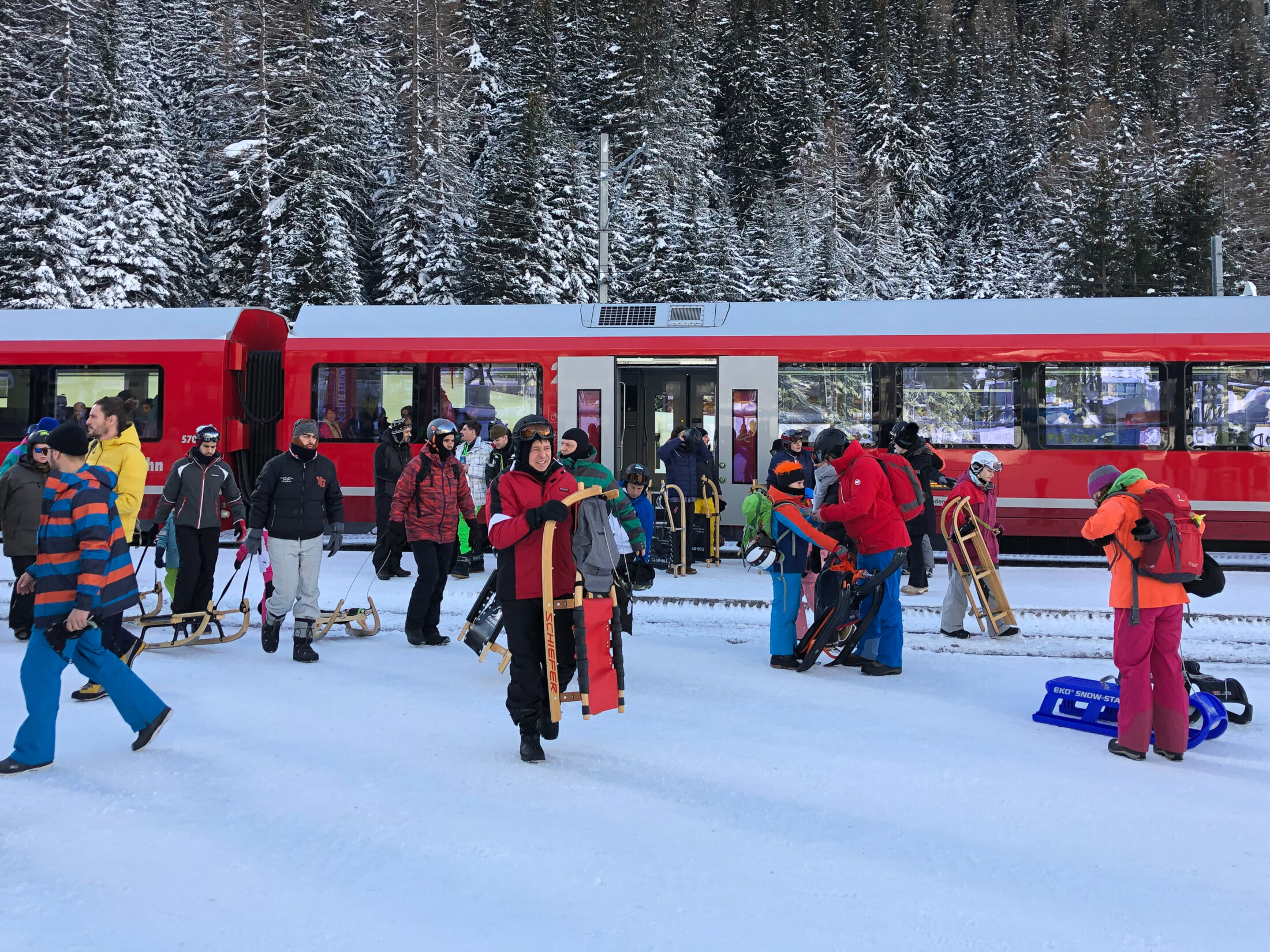Auch mit dem Zug geht es von Bergün bergauf nach Preda. Der Schlitten-Pass ist auch Bahnfahrkarten